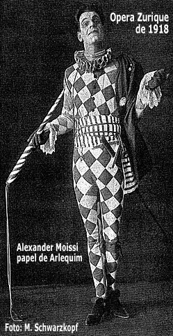 A foto é de 1918, crédito de M. Schwarzkopf, tirada do ator Alexander Moissi, que fez o papel-título de Arlequim da ópera de Zurique.
