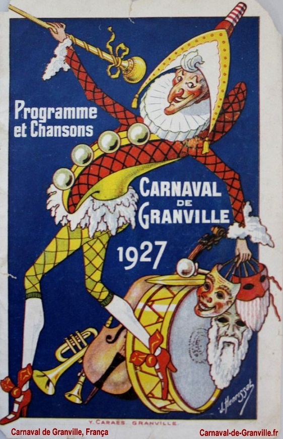 O Folder oficial do Carnaval de 1927, da cidade de Granville, na França, já estampava o icônico Arlequim.