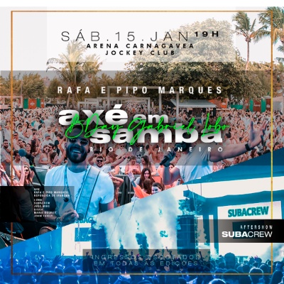 Além da dupla, o Axé em Samba 2022 conta com as da apresentações de SubaCrew e folia eletrônica com DJ´s.