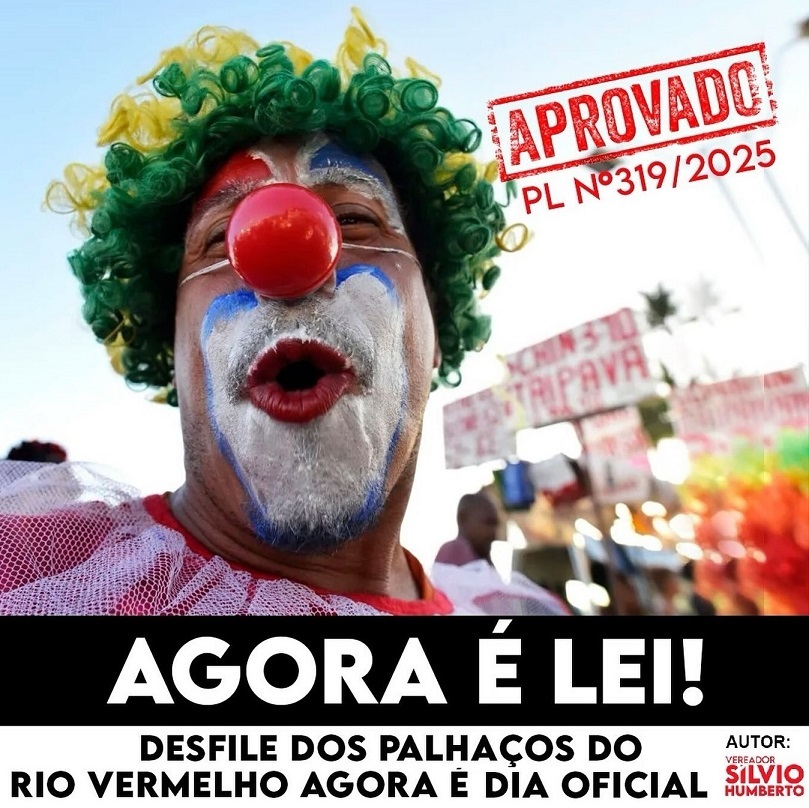 PROJETO DE LEI PL-319/2025 - O projeto foi proposto para reconhecer oficialmente o Desfile dos Palhaços do Rio Vermelho como um evento cultural permanente no Pré e Carnaval de Salvador, na Bahia.