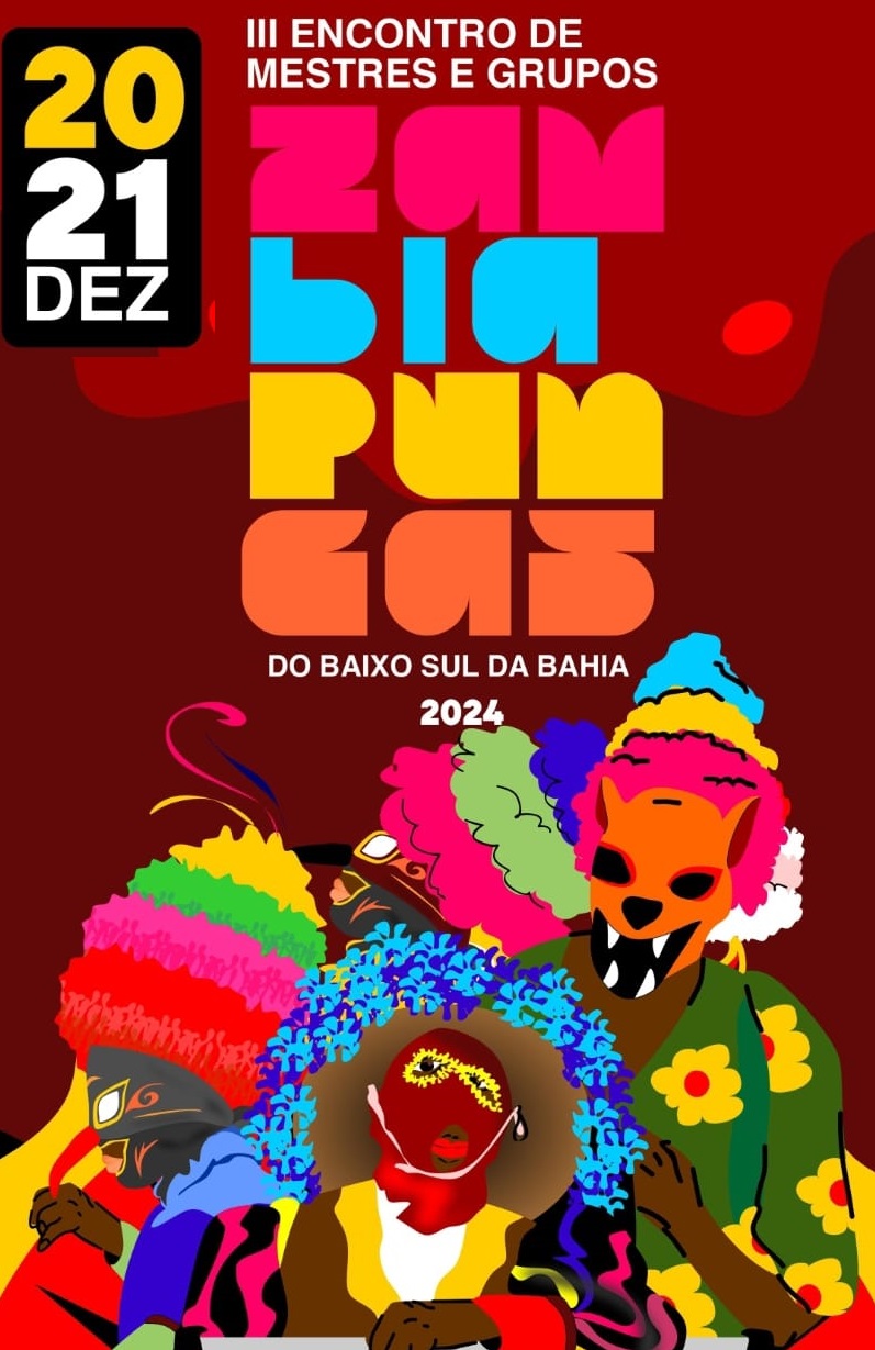 O Zambiapunga é uma manifestação folclórica de origem africana, trazida ao Brasil pelos povos bantos durante o período da escravidão. A tradição é celebrada com desfiles de homens mascarados e vestidos com roupas coloridas e elaboradas. O uso de cores vibrantes e a alegria da festa simbolizam a celebração da vida e a conexão com os espíritos.